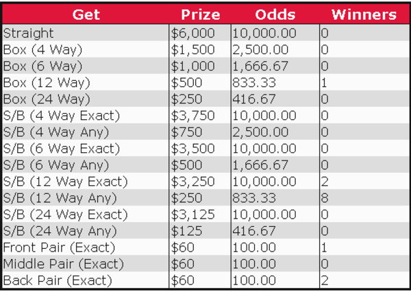 Nebraska Pick 4 Prize and Odds Chart